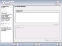 Új logikai kötet létrehozásához kattintson a Hozzáadás gombra és töltse ki a megjelenő ablak mezőit. A particionáláshoz hasonlóan itt is megadható a méret, a fájlrendszer és a csatolási pont. Normális esetben a logikai köteten létrejön egy fájlrendszer, például reiserfs vagy ext2, amely azután kijelöl egy csatolási pontot. A logikai köteten tárolt fájlok a telepített rendszeren e csatolási pontnál találhatók meg. A logikai kötet adatfolyama szétosztható több fizikai kötet között (sávozás). Ha ezek a fizikai kötetek különböző lemezeken helyezkednek el, akkor ez általában jobb olvasási és írási teljesítményt eredményez (a RAID 0-hoz hasonlóan). Sávozott logikai kötet azonban csak akkor hozható létre n sávval, ha a logikai kötet által igényelt merevlemez-terület egyenletesen felosztható n fizikai kötetre. Ha például csak két fizikai kötet áll rendelkezésre, akkor három sávból álló logikai kötet nem hozható létre.